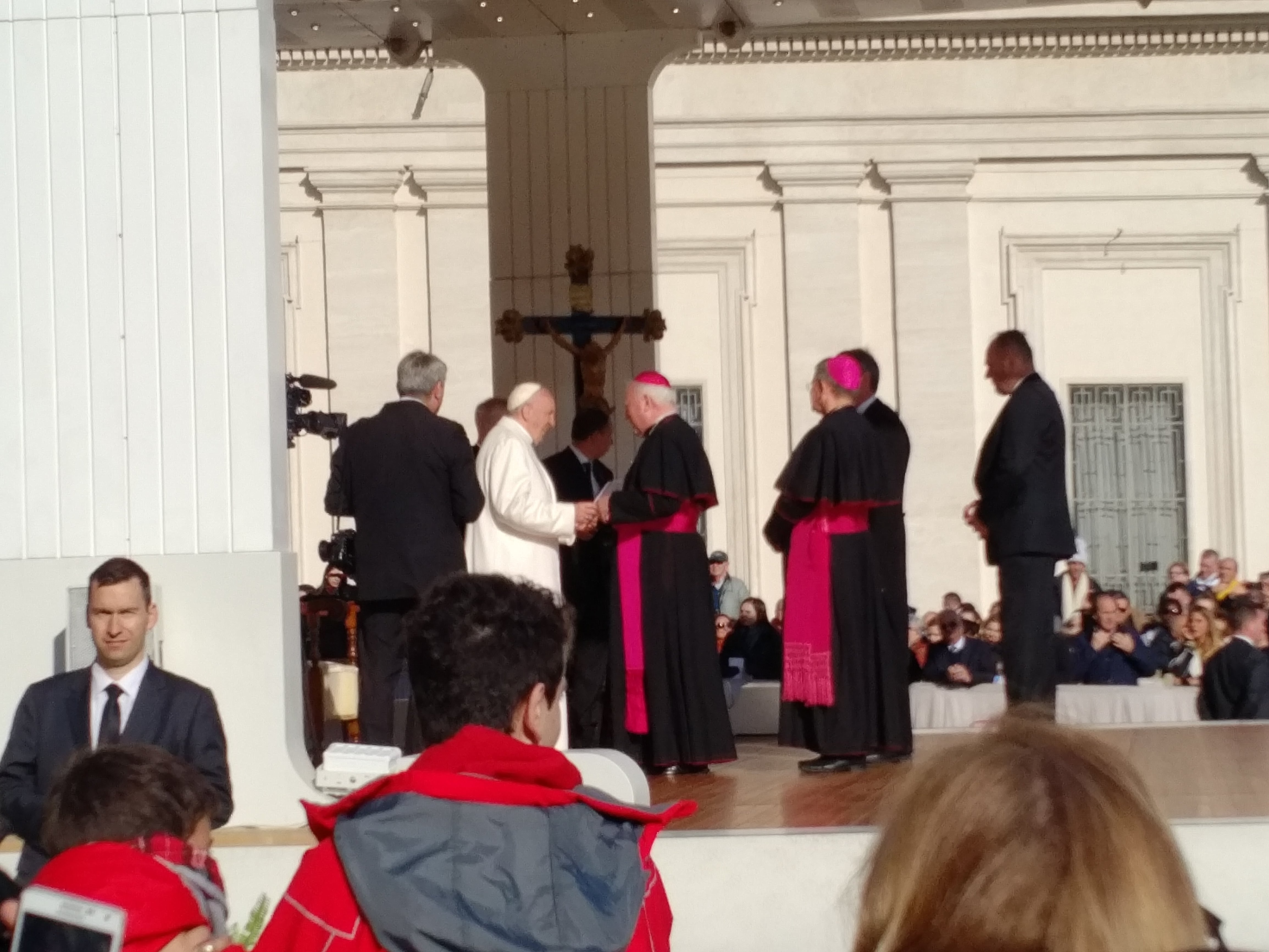 此乃為神父們而設的持續培訓課程,課程中包括有神學中的歷史,禮儀,倫理神學,教會法律及教會文件,教宗方濟的宗教合一法,保祿神學,平信徒合作,還有東方教會及禮儀,聖經與牧民等。課程之廣及深,真的喘不過氣呢。但總有忙裡偷閒的日子,例如你們看到舉世聞名的梵帝崗圖書館内的壁畫,真的嘆為觀止。還有梵帝崗銀行大門等。今天,又有機會去近距離的參加教宗講話日。我們得到特定安排坐位,在如此近距離去看和聽他的訓話,又別有洞天之感,真的那?得來的福份、又那裡堪當接受如此宏恩,無言感激由此而生。